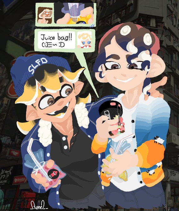 Quacks convinced his to come visit him on the splatlands くコ:彡🖤🖤 #tntduofanart #Quackityfanart #Willbursootfanart Plus he's showing tommy the potentiator juice :]