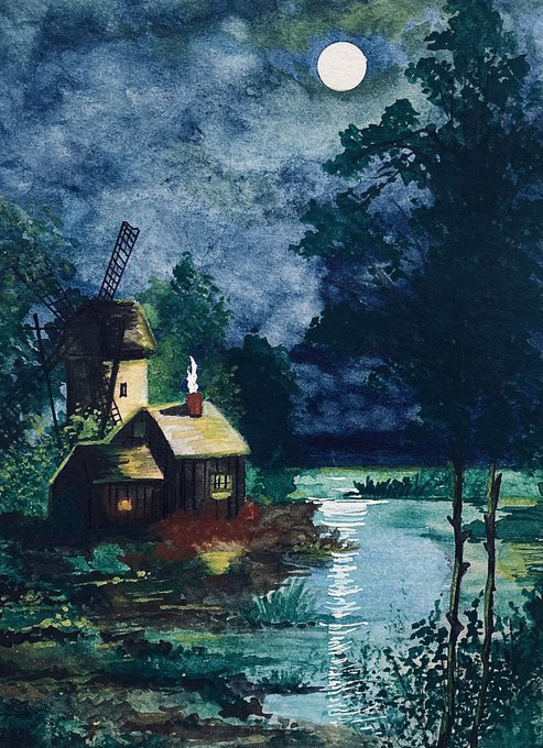 My painting of an old Dutch landscape 🎨 #landscape #windmill #boat #oilpainting #art #artistontwitter