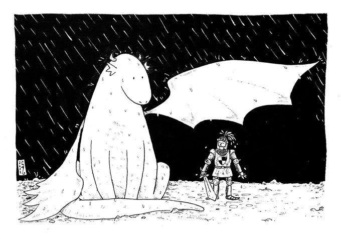 Twitter, toi qui a du goût, je te propose ce dessin du #peachtober22 ! Le thème était #wing #inktober #peachtober #dragon #knight