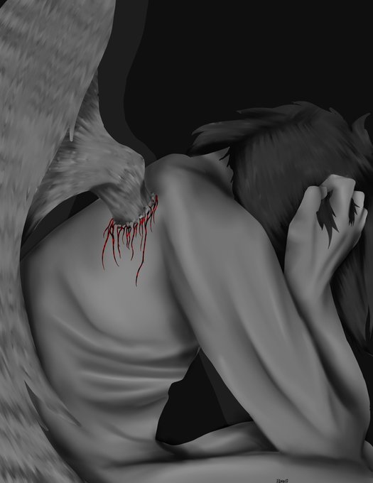 Day 10 I hope you like it, support me a lot or I will have to jump on the train tracks! 🖤 #mabsdrawlloweenclub #challenge #inktober2021 #inktober #winged #shibari #fairy #traditionalart #veganya #vegossus