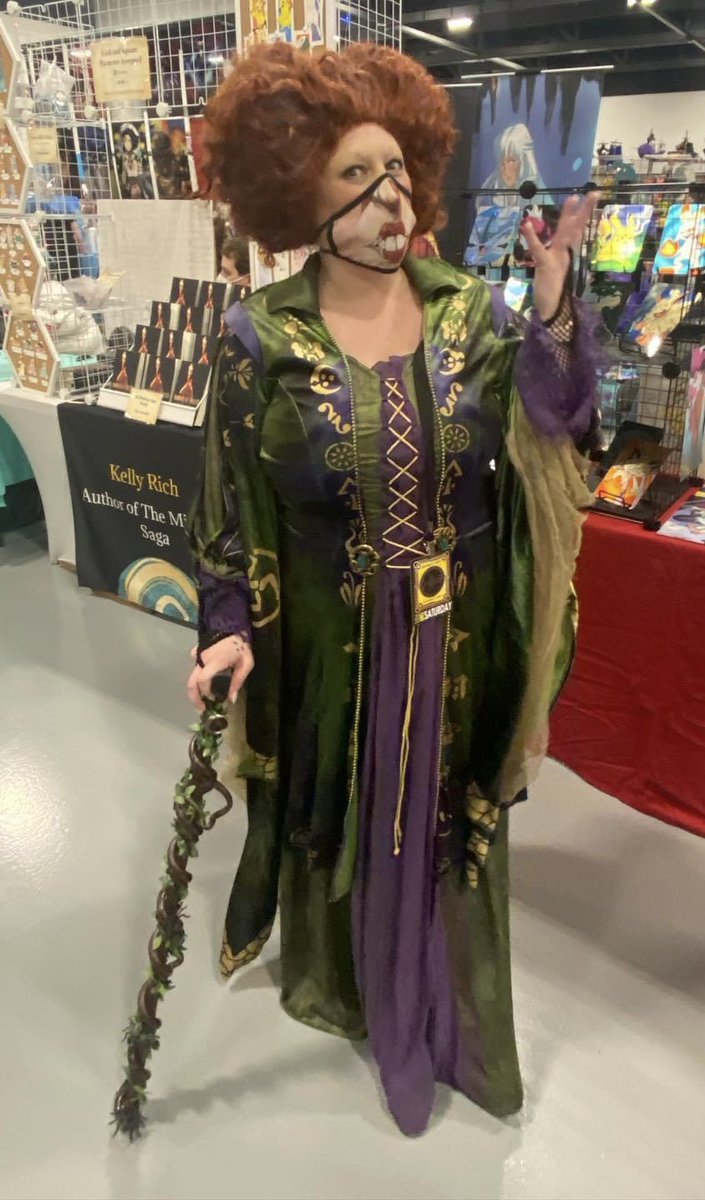 I’m so freaking proud of my #hocuspocus #winifredsanderson #cosplay this weekend at @lex_con #lctc #lexingtoncomiccon 🥰 the cane I decorated worked perfectly! It was so wonderful being back in cosplay and at a convention!
