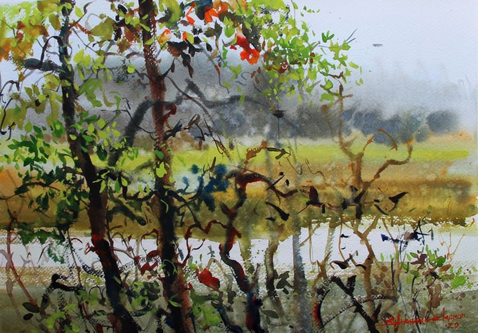 Mist in winter nature' watercolor by @shahanoormamun . . . #winternature #winterlandscapeinwatercolor #watercolorbyshahanoormamun #watercolordemobyshahanoormamun #watercolorpainting #art #artists #watercolourdemo #shahanoormamun #watercolorart