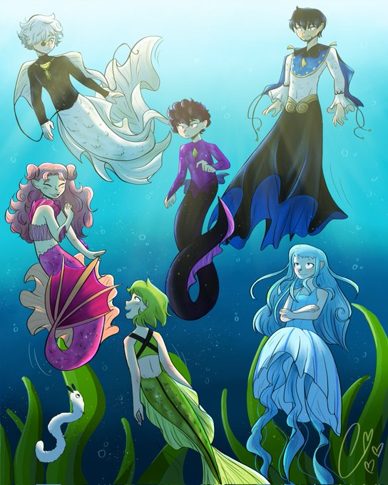 after 2 canvases and 4 days, they're all done!!! #mermay #mermay2023 #witchhatelier #witchhatatelierfanart