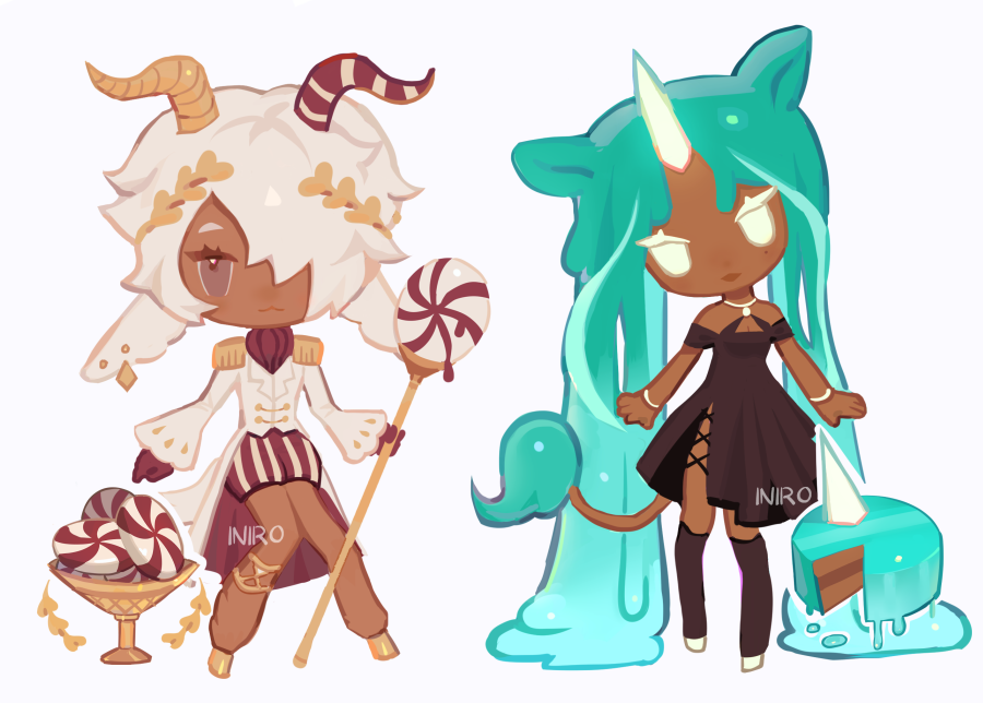 ( peppermint faun & mirror glaze unicorn ) my two designs for #witchhour ! had a lot of fun with these hehe🍬🍭