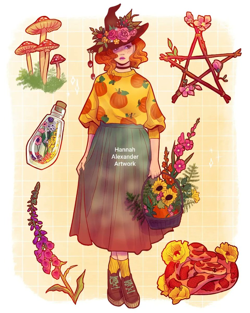 First #witchtober2022 entry is this unfinished character sheet of my OC, Gwyn. Idk when I’ll ever finish this. :’)