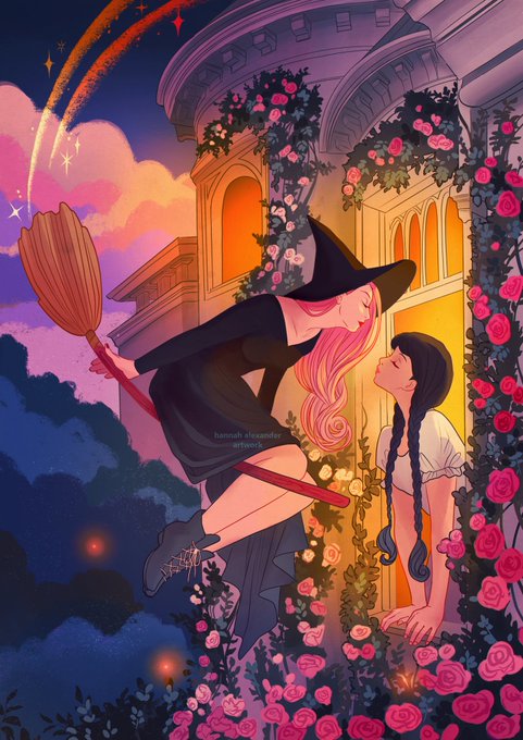 Here's the full version of my #witchtober2022 piece ! Wilhelmina's favorite cozy nook in her forest cottage, on an autumn afternoon. Don't you just want to snuggle up against pillows with your familiar and have tea and biscuits too ?