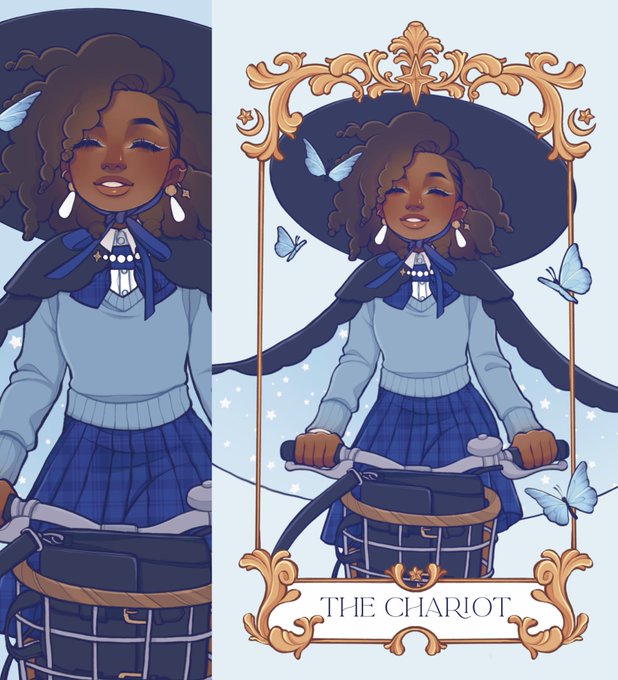 ✨🦋The Chariot🦋✨ This card often shows someone sitting in or driving a vehicle and stands for success, ambition, willpower and determination! It could mean that you will achieve your goals if you have a solid plan!💪🏼 #witchytarotober