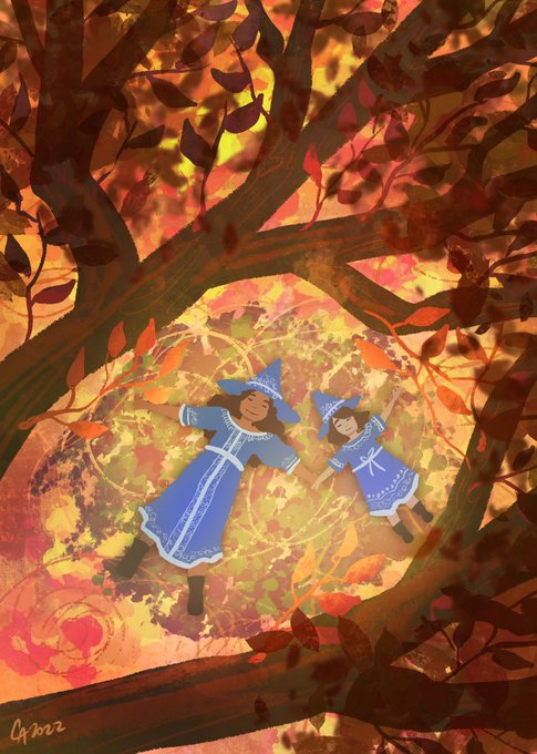 Resting under the autumn leaves 🍂🍁🧡 #witchyvibes #witchtober #drawlloween #crystafett #cathleenabalos