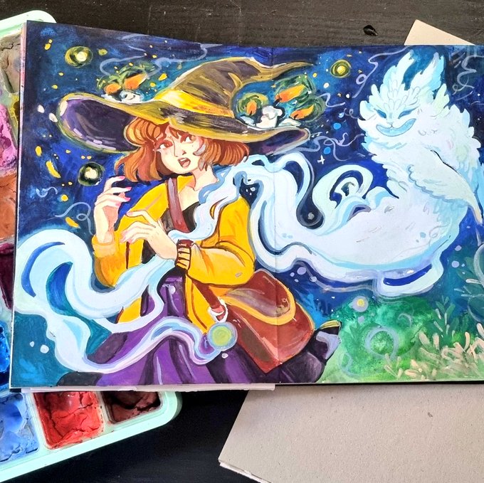 What a trickster the ghostly familiar can be #gouchepainting #gouache #witchyvibes #witchtober #ghostcat