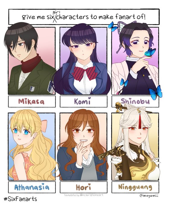 #sixfanarts 2! Had fun drawing the charas :) #mikasa #komi #shinobu #athanasia #hori #ningguang #genshinimpact #kimetsunoyaiba #horimiya #attackontitan #wmmap #komicantcommunicate #sixfanartschallenge