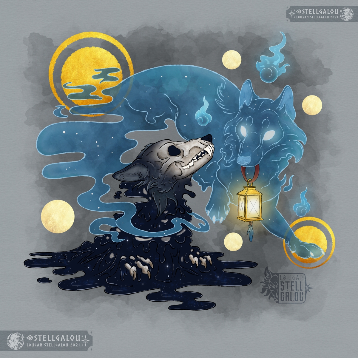#inktober 2021 Day 6 : #spirit @inktober @kritaartists @DeviantArt #inktober2021 #inktoberday6 #inktoberspirit #wolf #Wolfdog #Canine #Ghost #Zombie #SOUL #souleater #Halloween #digitalart #watercolor #creature #BLUE