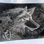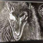 アクリル板をカッターナイフで削って描く #スクラッチアート 下描きなしの一発描き 原画そのままの状態 🐺 #Wolf #wolfdog #絵描きさんと繋がりたい #創作クラスタさんと繋がりたい