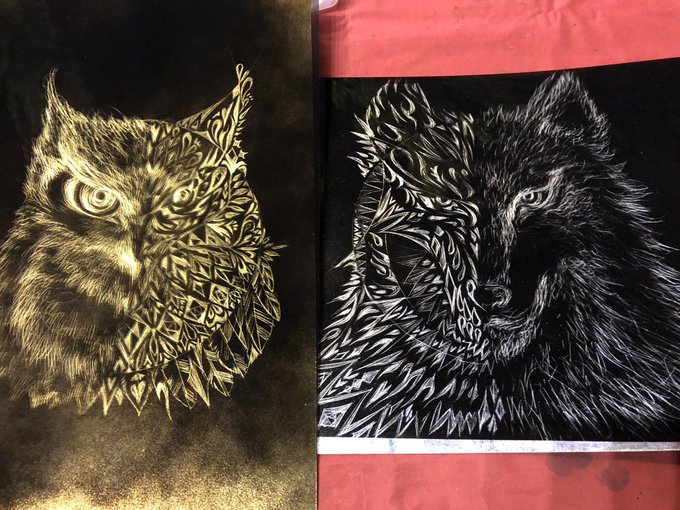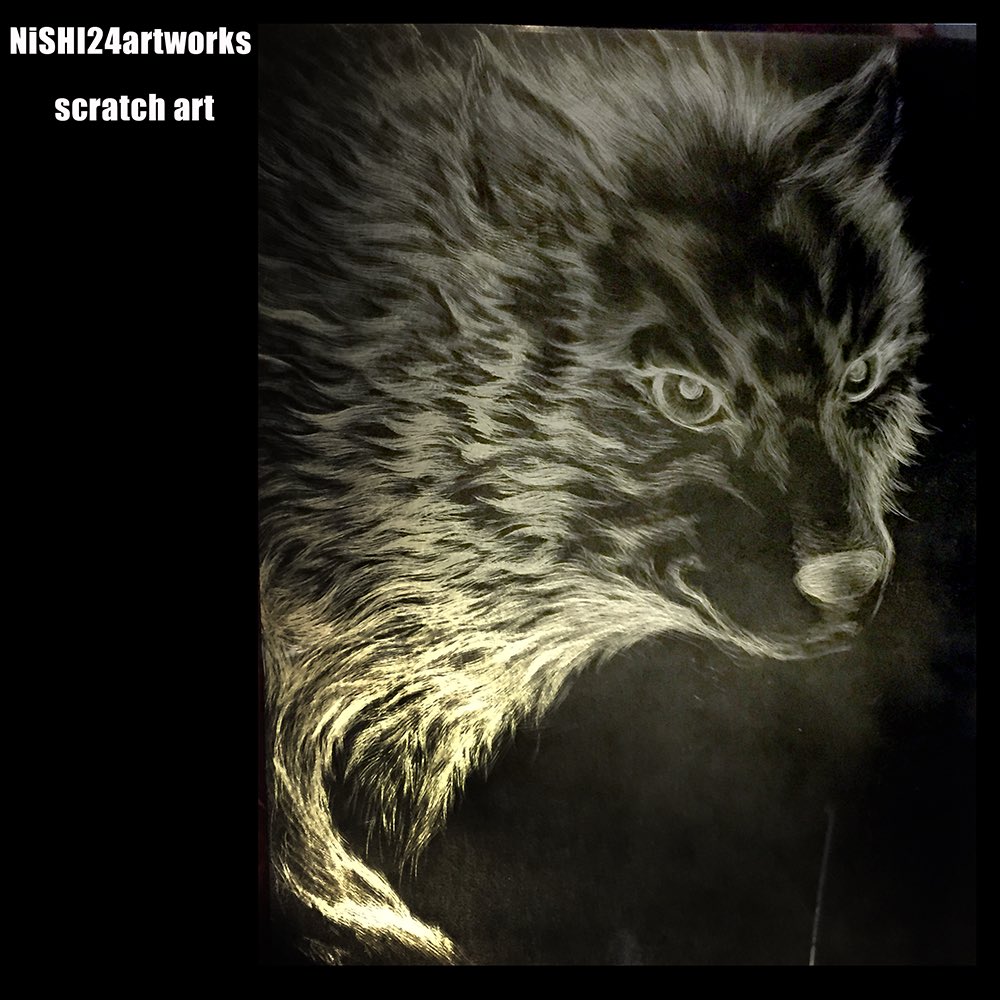 アクリル板をカッターナイフで削って描く #スクラッチアート 下描きなしの一発描き 1月11日は #犬の日 狼と犬モチーフまとめ #Wolf #wolfdog #doglove #絵描きさんと繋がりたい #PortfolioDay #ArtistOnTwitter