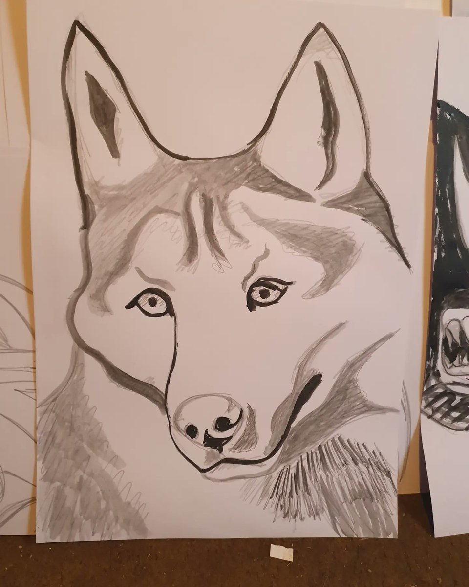 Inktober Day 29 Wolfy Dog #inktober #inktober2021 #ink #dog #wolf #wolfdog #art #petportrait #sketchbook #dailyart