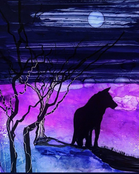 🐺 Wolf Moon 🐺. Alcohol Inks and Windsor and Newton ink. Wolf Moon Tonight. I hope it’s a clear night. #ArtistOnTwitter #WolfMoon #contemporaryart #ink #painting