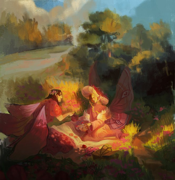 Them: let's have a nice, calm picnic ^^ The butterflies: I don't think so- *make a whole show of light* #wolfypinkdtiys #philzafanart #mumzafanart