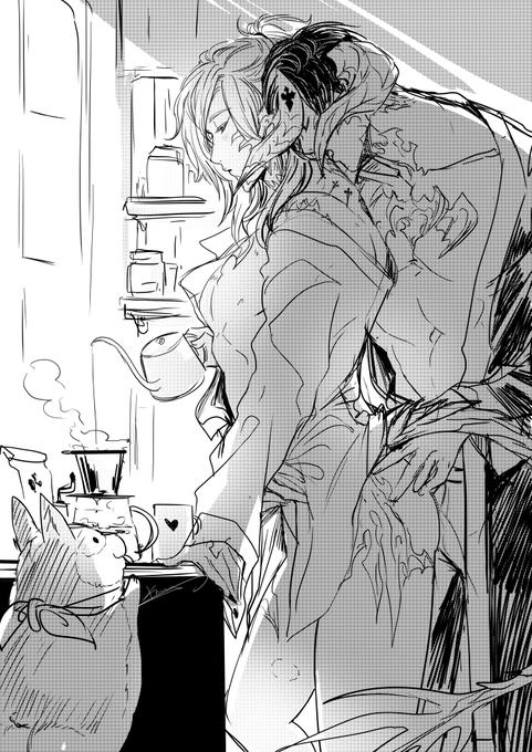 Good morning! Coffee Tea or M...Oh😳 #wolnpc #WolVrtra #blancffxivartwork #knotberryartwork #ffxivart