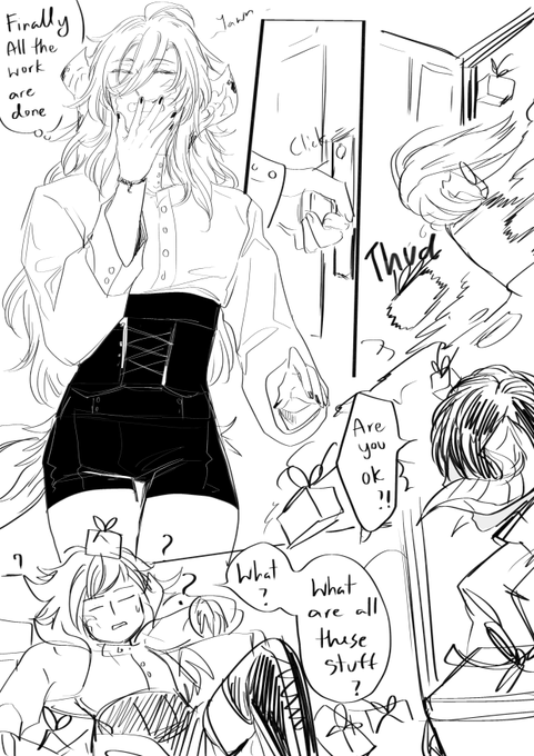 Some sketch comic of their White day 💐 #wolnpc #WolVrtra #blancffxivartwork #knotberryartwork #ffxivart