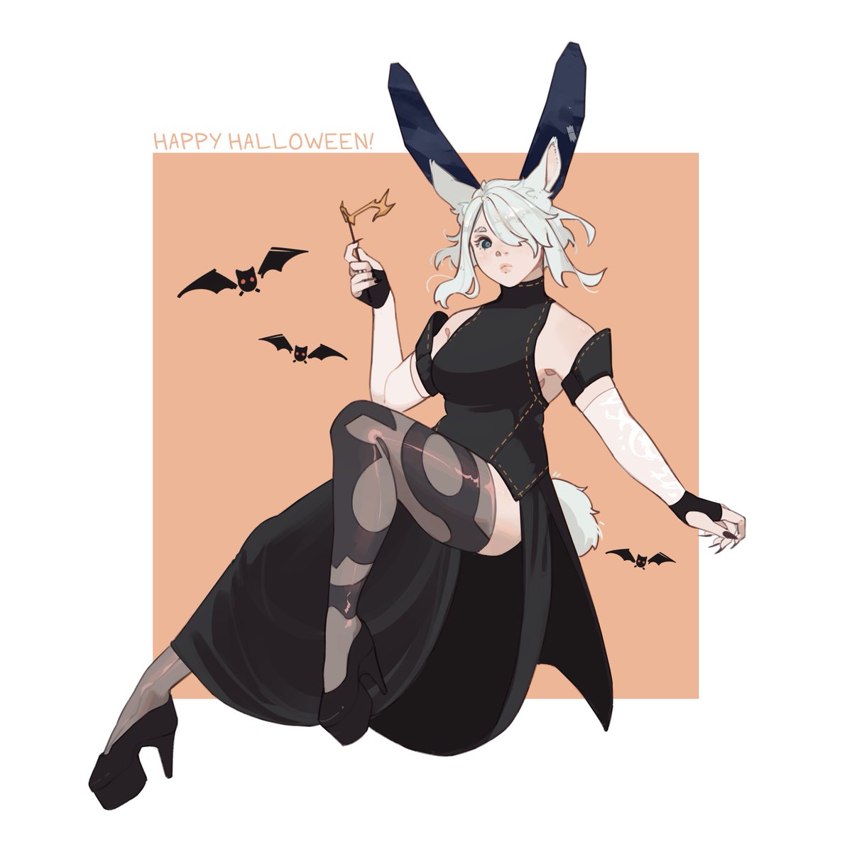 Happy #wolortreat! I dressed Haruka up as @/opteekaal's Lei Lei, complete with paper bunny ears 🐰