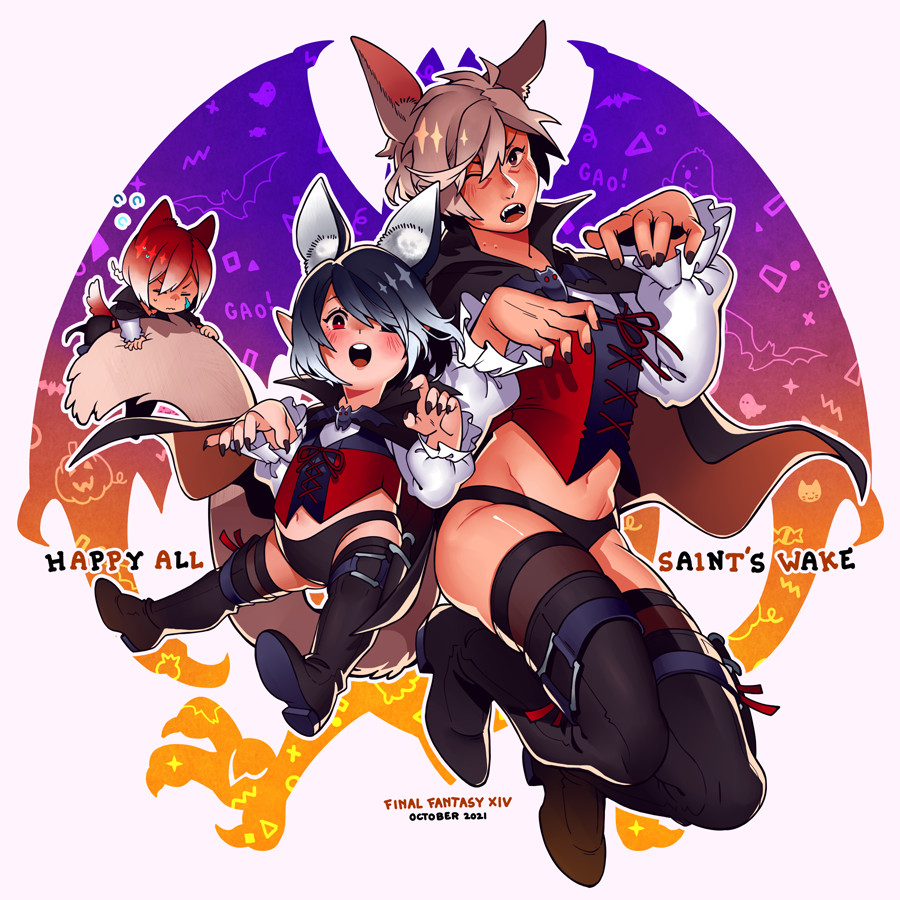 My part for the Halloween exchange hosted by @healinggremlin!! Gaku is dressed up as @tasobubu’s WoL, Adahy Aves! Gave it a small werewolf vibe with the moon hehe! #wolortreat #FFXIVART
