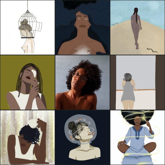 GN! Here is out my #artvsartist2021 of illustrations. I just noticed that I use to draw women with close eyes. What do u suppose that means? 😌💙 #illustration #WomanArt