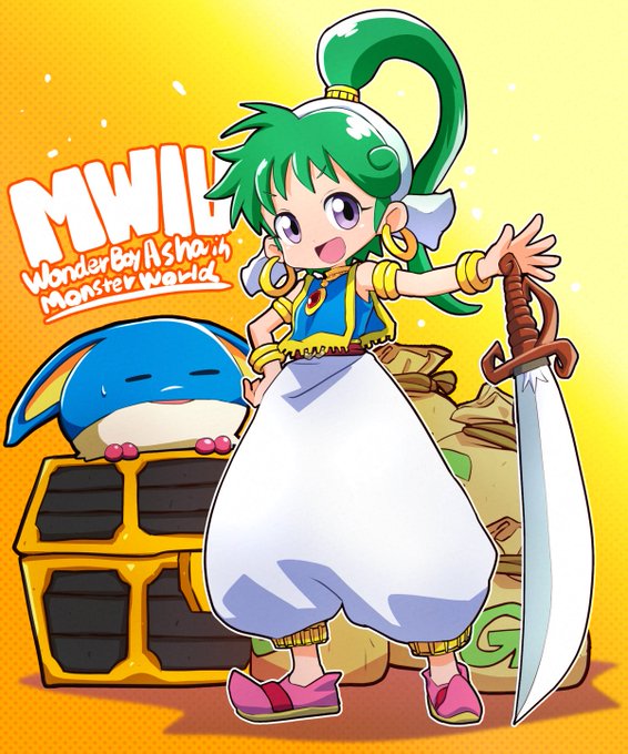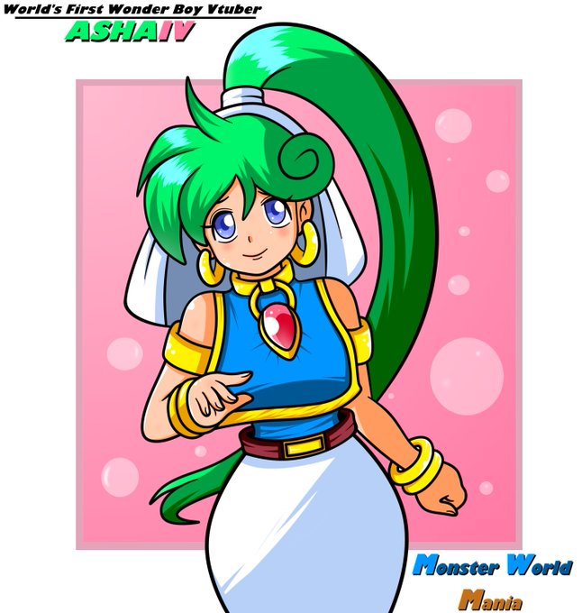 #AshaIV #WonderBoy #MonsterWorld #fanart #WonderBoyArt #VTuberUprising A celebratory piece for the very first Wonder Boy #Vtuber ever, @AshaIVtweets The model is very cute and It's wonderful that this is even a thing; a dream come true. We at MWM support you! 🎊