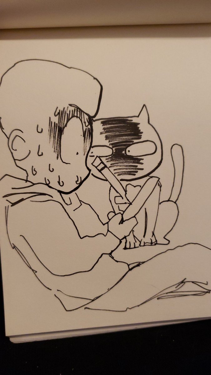 Last one for #inktober2021 and i had to a #sketch of how every time I was #drawing for this challenge, this #Wonderful little #horror of a #cat would go out of her way to bother me Lol (still #love her tho 🤣)