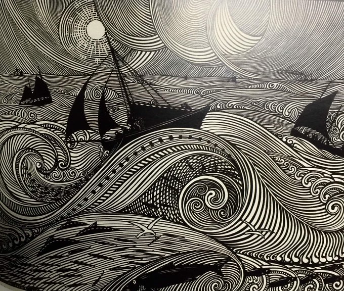 'On The Open Sea', 1921 Woodcut from La Petit Histoire Bretonne Artist : Rene Quillivic #renequillivic #woodengraving #art