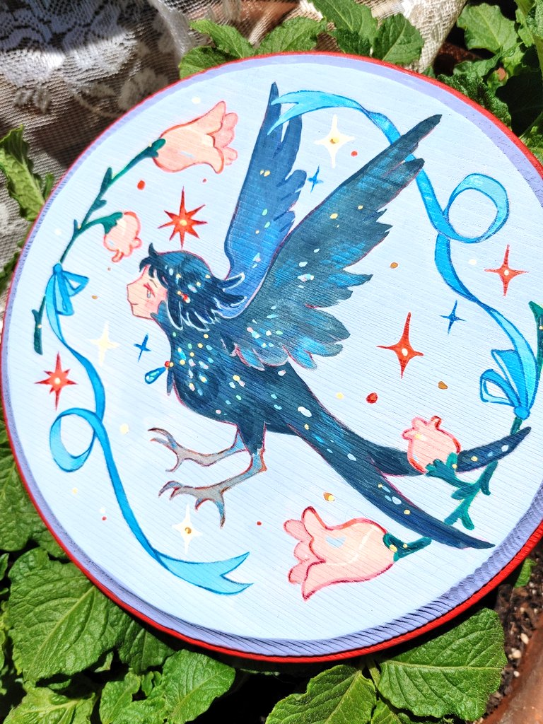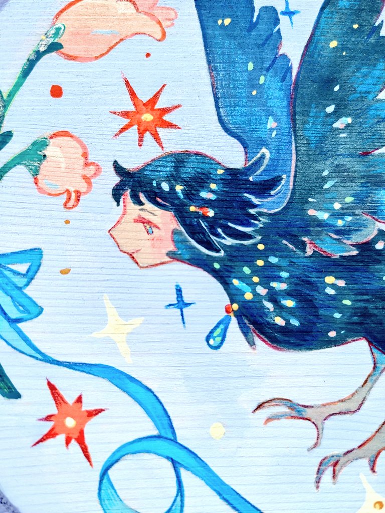 I finished it last weekend and realized I didn't show any pics here!:D I am almost tempted to not put it on the shop next week.XD #woodpainting #gouache