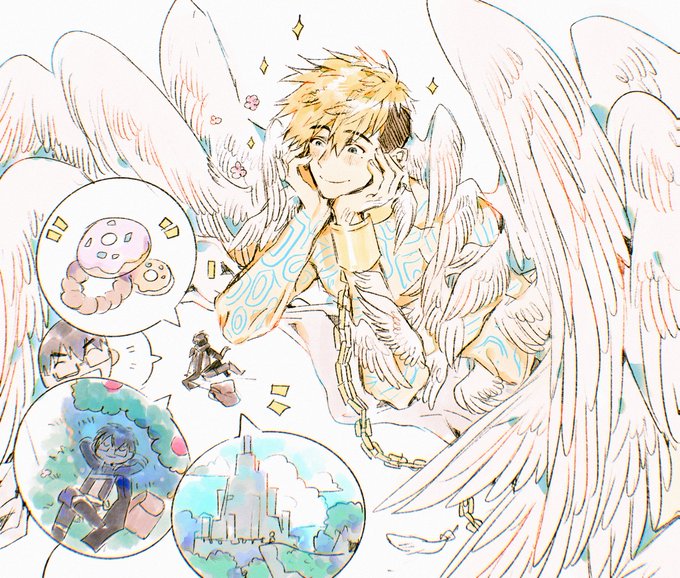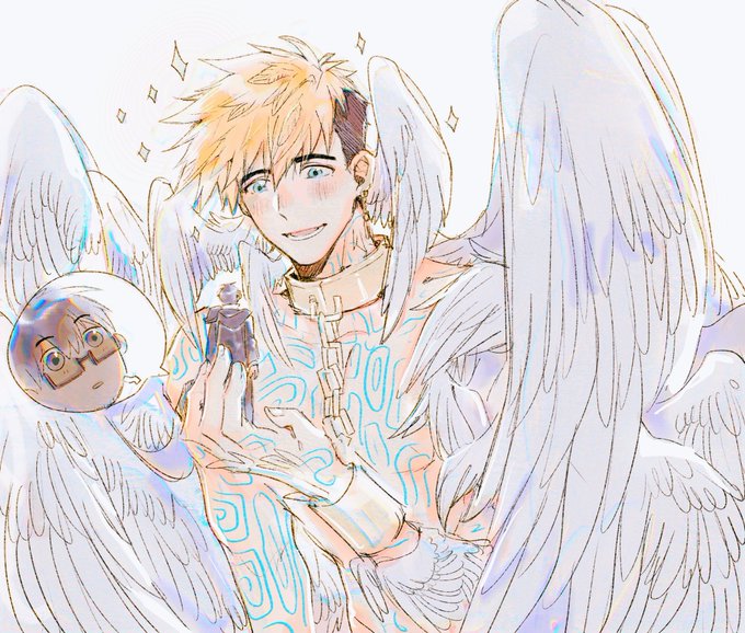 POV: the beautiful winged giant creature turns into human-sized?! But he has nothing to wear. What will you give him? > Coat > Pants #WV #woodvash #TRIGUNSTAMPEDE