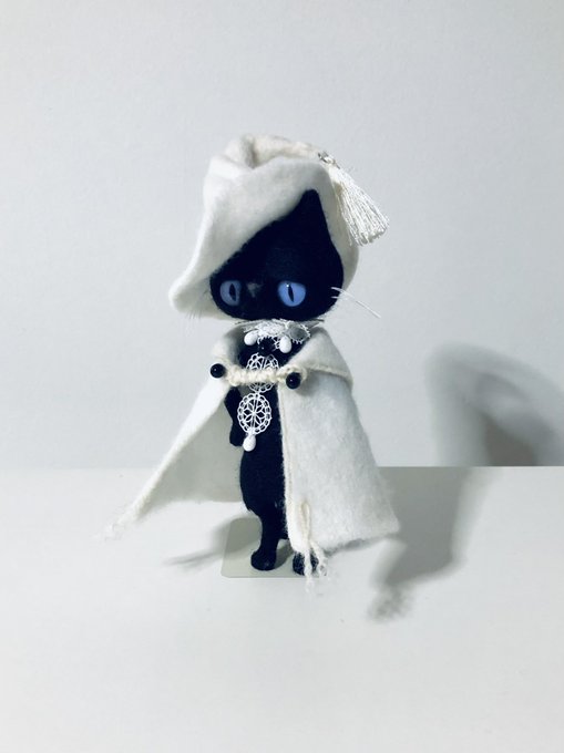 #モノクロームロマンチカ 『白の魔法使い (黒猫)』 つむじ曲がりすぎて帽子迄曲がりに曲がっている つむじ曲がりが曲がりすぎて一周しちゃった感じの性格。本人の中では色々考えがある様ですが、側から見るとかえって素直に見える様です😽 #くり作品 #woolart #needlefelting #needlefelt twitter.com/kurinokurigash…