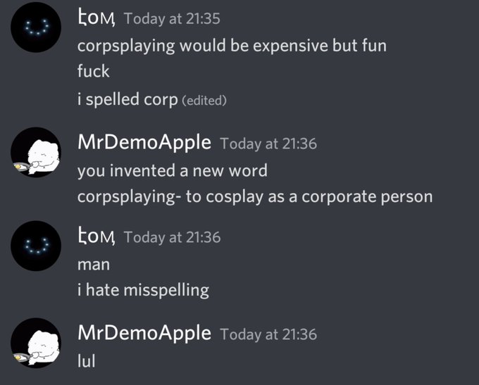 @btomaek invented a new word #Tom #word #newword #invented #corpsplay #cosplay #corporate #misspelled #corp