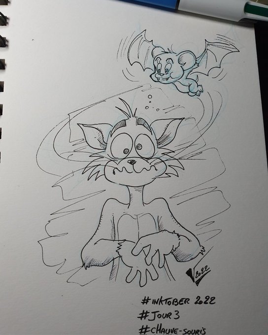 Challenge:"Inktober 2022" _Jour/day:03 _Thème:chauve souris/bat #inktober2022 #inktober #challengeinktober #jour03 #tomandjerry #cartoon #sketching #artwork #work #workink #ink #inksketch #artistfrench #liners #markersketch