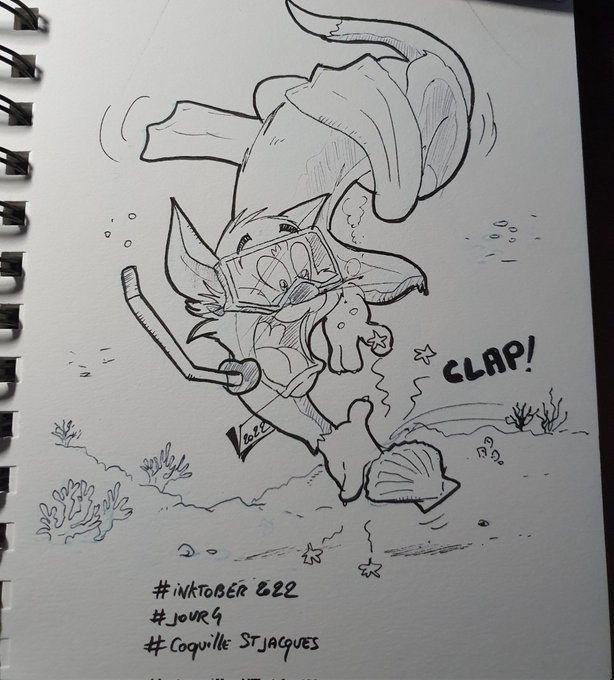 Challenge:"Inktober 2022" _Jour/day:04 _Thème:scallop/coquille Saint Jacques #inktober2022 #inktober #challengeinktober #jour04 #tomandjerry #cartoon #sketching #artwork #work #workink #ink #inksketch #artistfrench #liners #markersketch