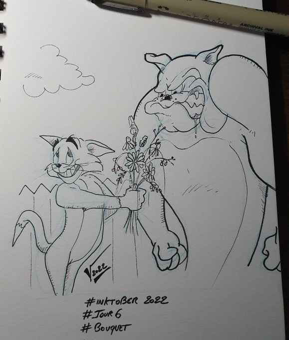 Challenge:"Inktober 2022" _Jour/day:06 _Thème:bouquet #inktober2022 #inktober #challengeinktober #jour06 #tomandjerry #cartoon #sketching #artwork #work #workink #ink #inksketch #artistfrench #liners #markersketch