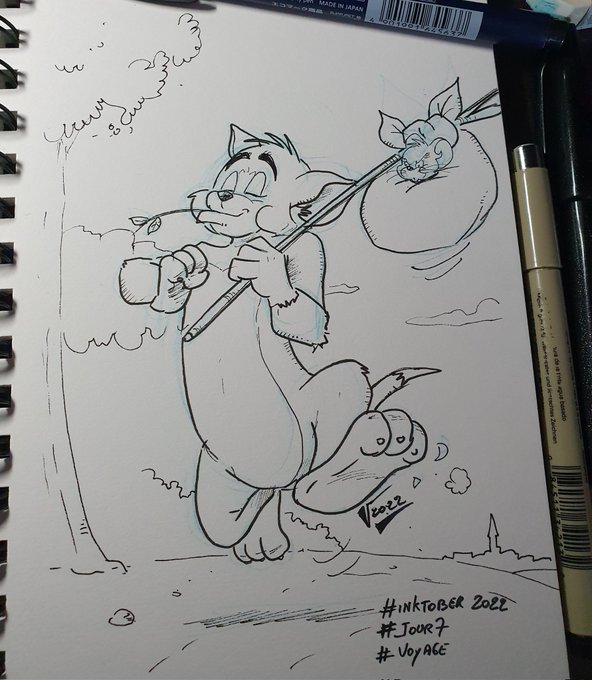 Challenge:"Inktober 2022" _Jour/day:07 _Thème:voyage/trip #inktober2022 #inktober #challengeinktober #jour07 #tomandjerry #cartoon #sketching #artwork #work #workink #ink #inksketch #artistfrench #liners #markersketch