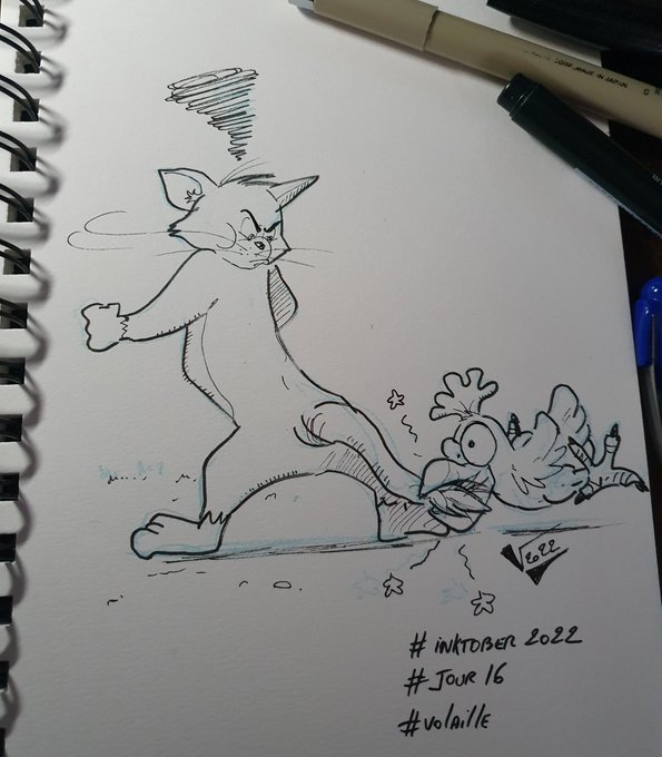 Challenge:"Inktober 2022" _Jour/day:16 _Thème:volaille/fowl #inktober2022 #inktober #challengeinktober #jour16 #tomandjerry #cartoon #sketching #artwork #work #workink #ink #inksketch #artistfrench #liners #markersketch