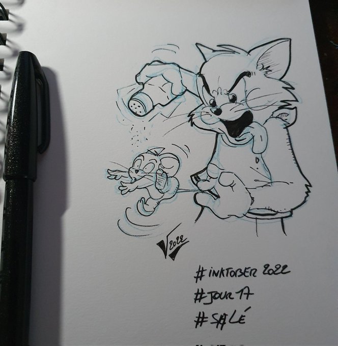 Challenge:"Inktober 2022" _Jour/day:17 _Thème:salé/salty #inktober2022 #inktober #challengeinktober #jour17 #tomandjerry #cartoon #sketching #artwork #work #workink #ink #inksketch #artistfrench #liners #markersketch