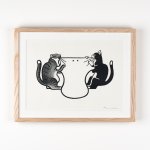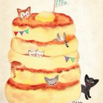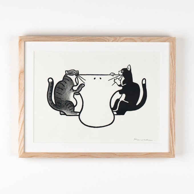 『大人気のおばけ』 安心安全を通り越して、大人気になってしまったおばけです。 (『チェック済みのおばけ』の連作です。) 今日は #世界猫の日 #WorldCatDay という事で、猫がいる作品をご紹介✨ 今にもおばけをボロボロにしそうなこちらの2匹も我が家の猫たちをモデルにしています🐈👻🐈⬛