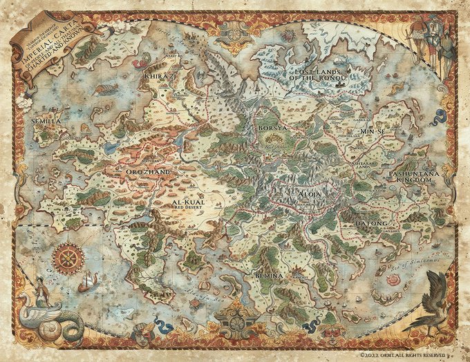 Creating The Imperial Carta was such a treat🥳Find the map on the cover and inside @erinmevans ' new sensational #book #EmpireOfExiles! Thank you @Planetpinto, Erin and the team at @orbitbooks! #cartography #fantasymap #worldbuilding #worldmap #maps #artoftheday #artistsontwitter