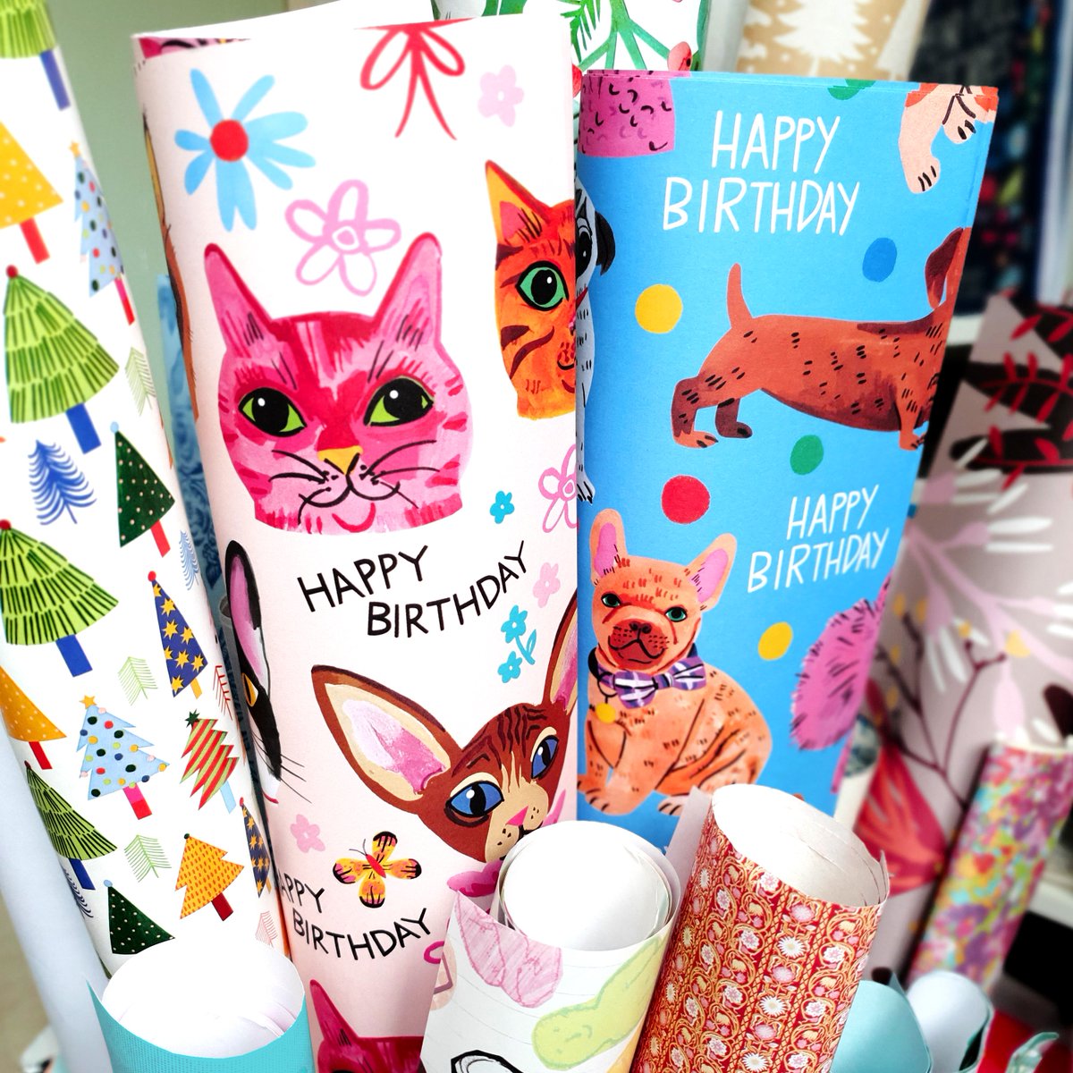 Love collecting greeting cards, postcards, stamps, and also giftwrap. Two of my recent wrapping paper designs for EarlyBirds arrived the other day which are now part of the collection -"Happy Birthday" cats and dogs. @Ebirdcards #giftwrappingpaper #wrappingpaper #illustrator
