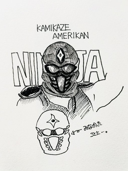 カミカゼ ニンジャ・マック(@NinjaMack1 ) KAMIKAZE AMERICAN #ニンジャ・マック #NinjaMack #noah_ghc #プロレス #wrestleUNIVERSE #イラスト #アナログイラスト #ペン画 #イラスト好きさんと繋がりたい #絵描きさんと繫がりたい #pen #portrait #illustration #wrestling #落書き