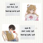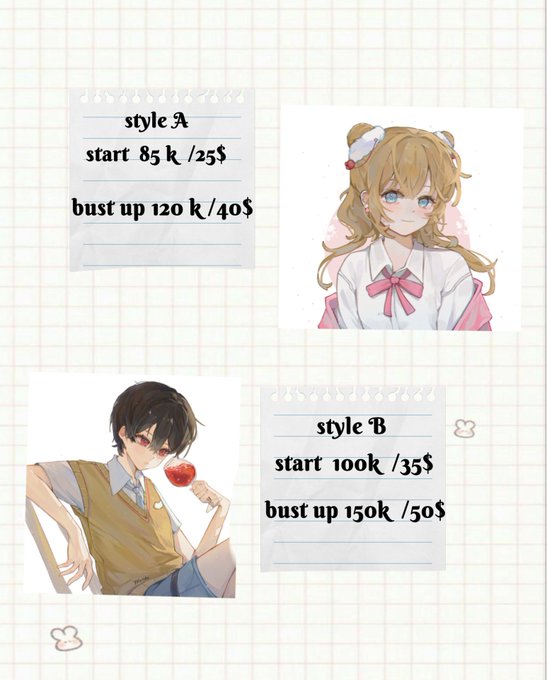 Hello I'm open for commission on this style! Like and retweet will be very helpful :D Headshot $20/IDR 70k Bust up $30/IDR 100k Half body $40/IDR 150K Background $10-20/IDR 50k-100k Payment via paypal/dana TAT on reply #wts #artidn #zonakaryaid #artistindonesia