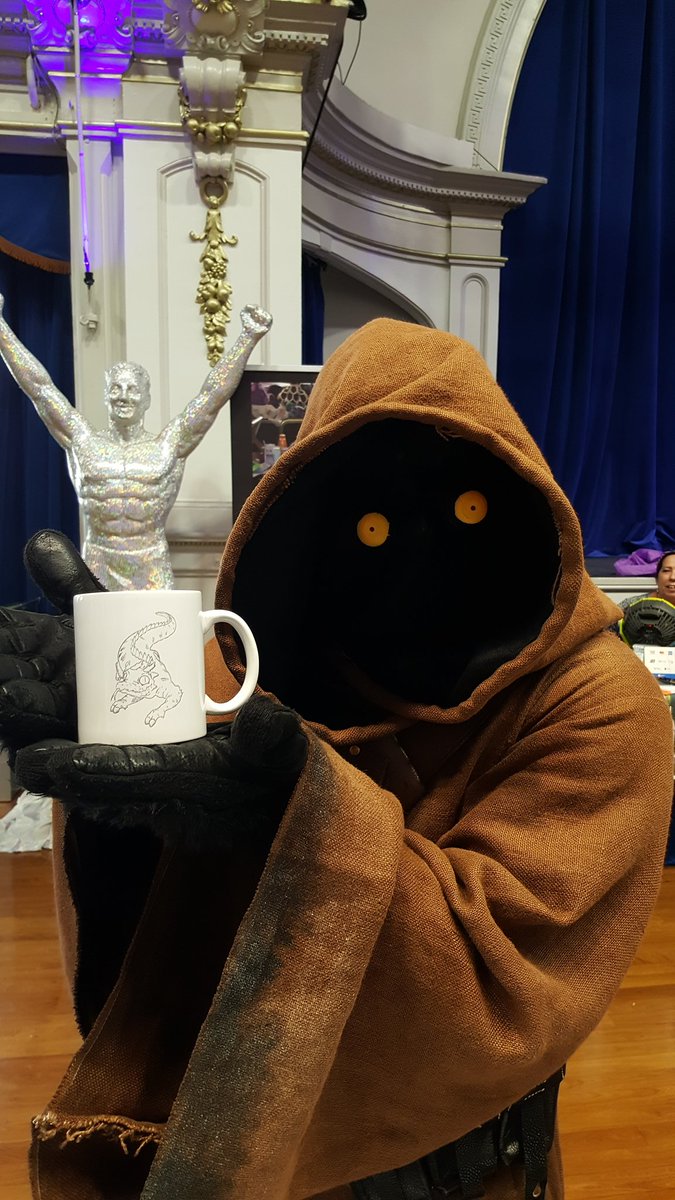 A Jawa taking a shine to my products at @Wyntercon! ☕👀 #wyntercon #wyntercon2022 #wynterconix #jawa #lovelyjawa #jawacosplay #starwars #comiccon #eastbourne