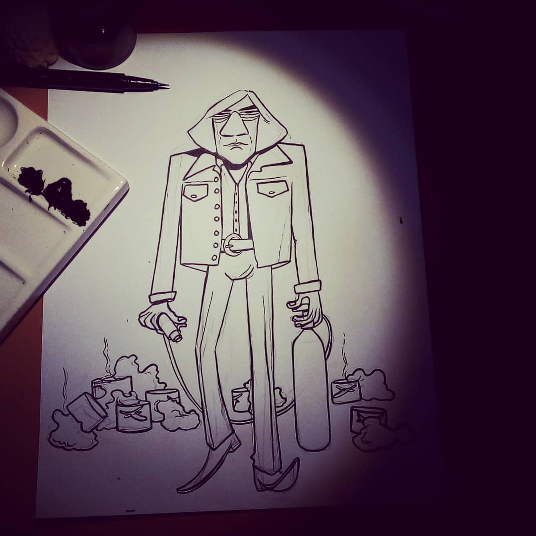 Día 3 del reto #xel2tober de @_xel2_ Tema "Carne Rusa" 🥫 Inspirada en la película "NO ES PAÍS PARA VIEJOS" de Los hermanos Coen. #xel2tober2021 #inktober #loshermanoscoen #noespaisparaviejos #libre