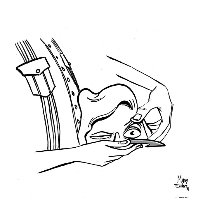 Día 18 del reto #xel2tober de @xel2Humor Tema "Surrealismo en pote" 🙃 Esta vez me inspiré en una escena del cortometraje "Un perro Andaluz" de #LuisBuñuel y #SalvadorDalí #yoquierover #nomeciegues #cegar #ink #inktober #inktober2021 #xel2 #xel2tober2021 #Surrealismo
