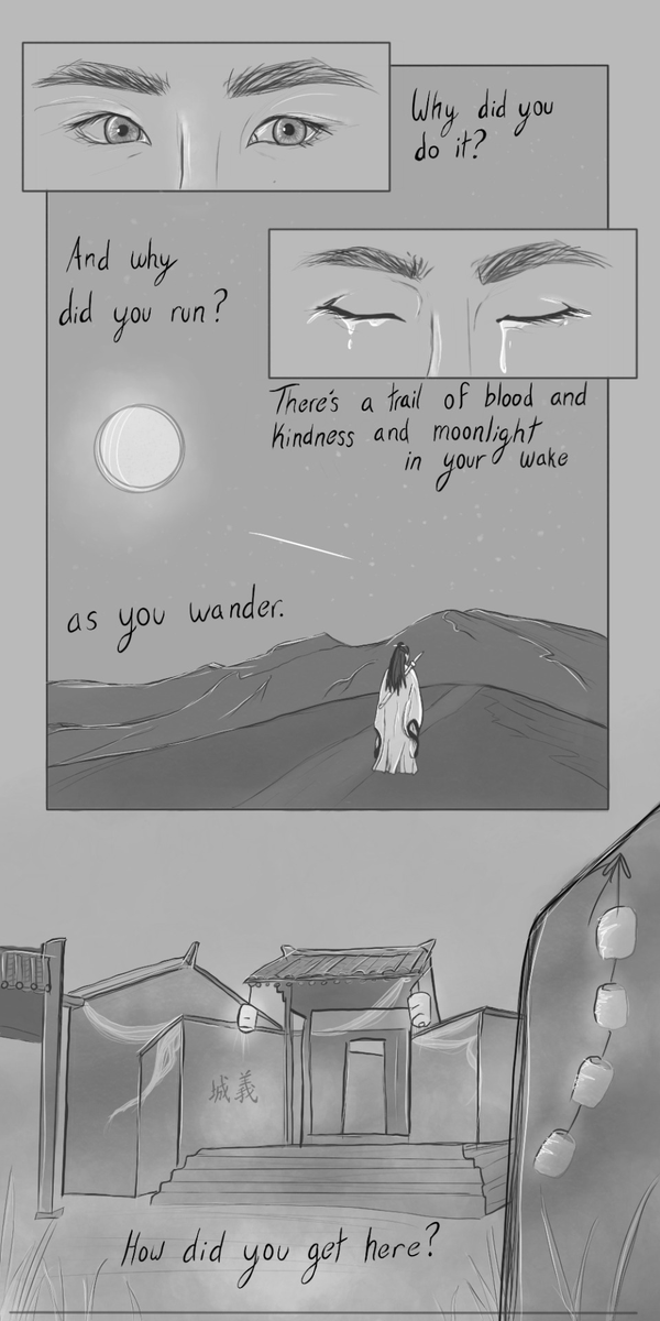 Selfless. (happy birthday daozhang-- here's something I drew a while back about bright moonlight, bitter frost, and Xiao Xingchen's kindness as it cornered him into tragedy) #MDZS #XiaoXingchen