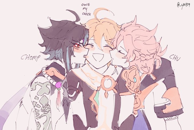 -smile -no, u're embarrassing me -well -well #genshinimpactfanart #xiao #albedo #aether #xiaobedo #xiaother #albether #xiaobether