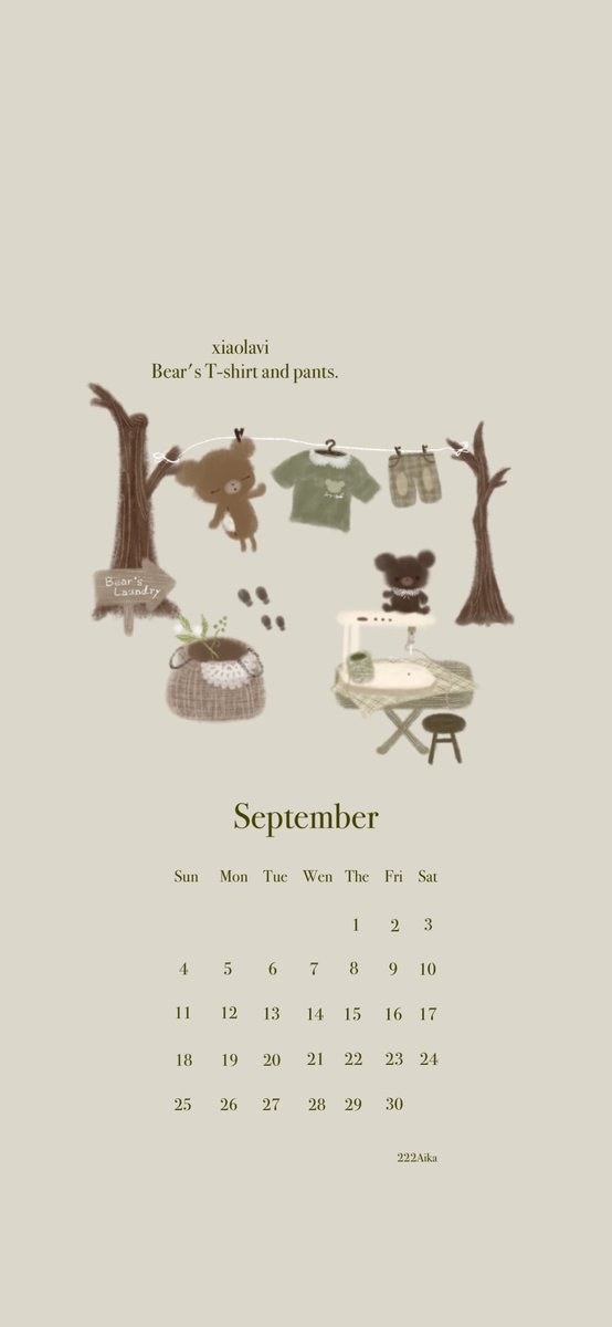 🧺September calendar… 9月のカレンダーを描きました🌿 よろしねれば、お好みのサイズに調節してみてくださいね°.~🧸 ・ 【HP】 xiana777.amebaownd.com ・ #xiaolavi #9月のカレンダー #フリーイラスト #壁紙 #ゆるいイラスト #イラスト #ゆる絵 #illustration #絵描きさんと繋がりたい