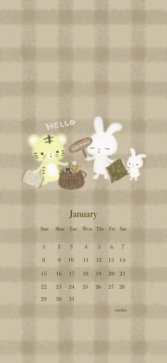 ⏳January calendar… 1月のカレンダーを描きました🐰 よろしければ、お好みのサイズに調節してみてくださいね🧺 ・ 【HP】 xiana777.amebaownd.com ・ #xiaolavi #1月のカレンダー #フリーイラスト #壁紙 #ゆるいイラスト #ゆるかわイラスト #ゆる絵 #illustration #絵描きさんと繋がりたい